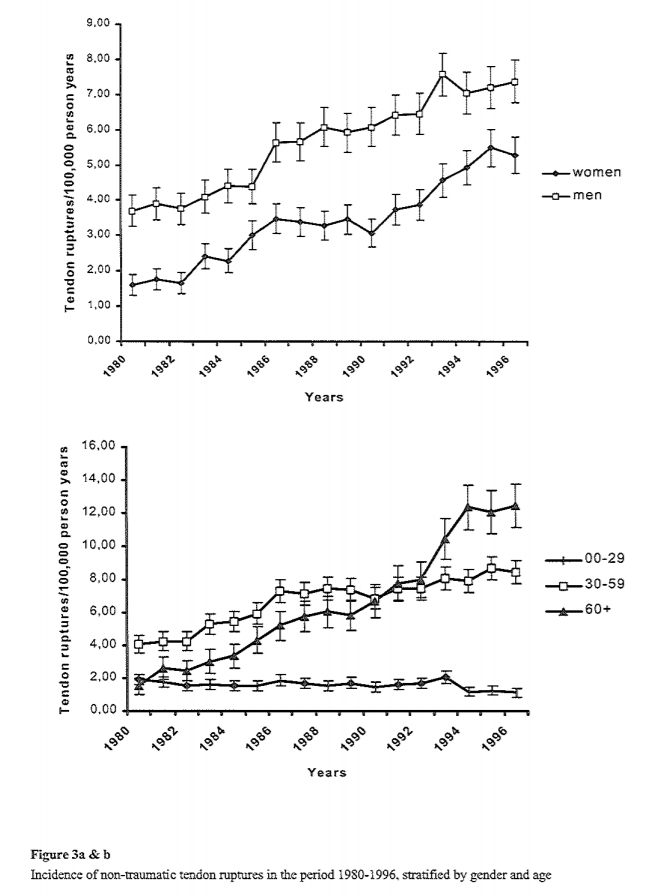 Die Anzahl der Sehnenrupturen korreliert damit.