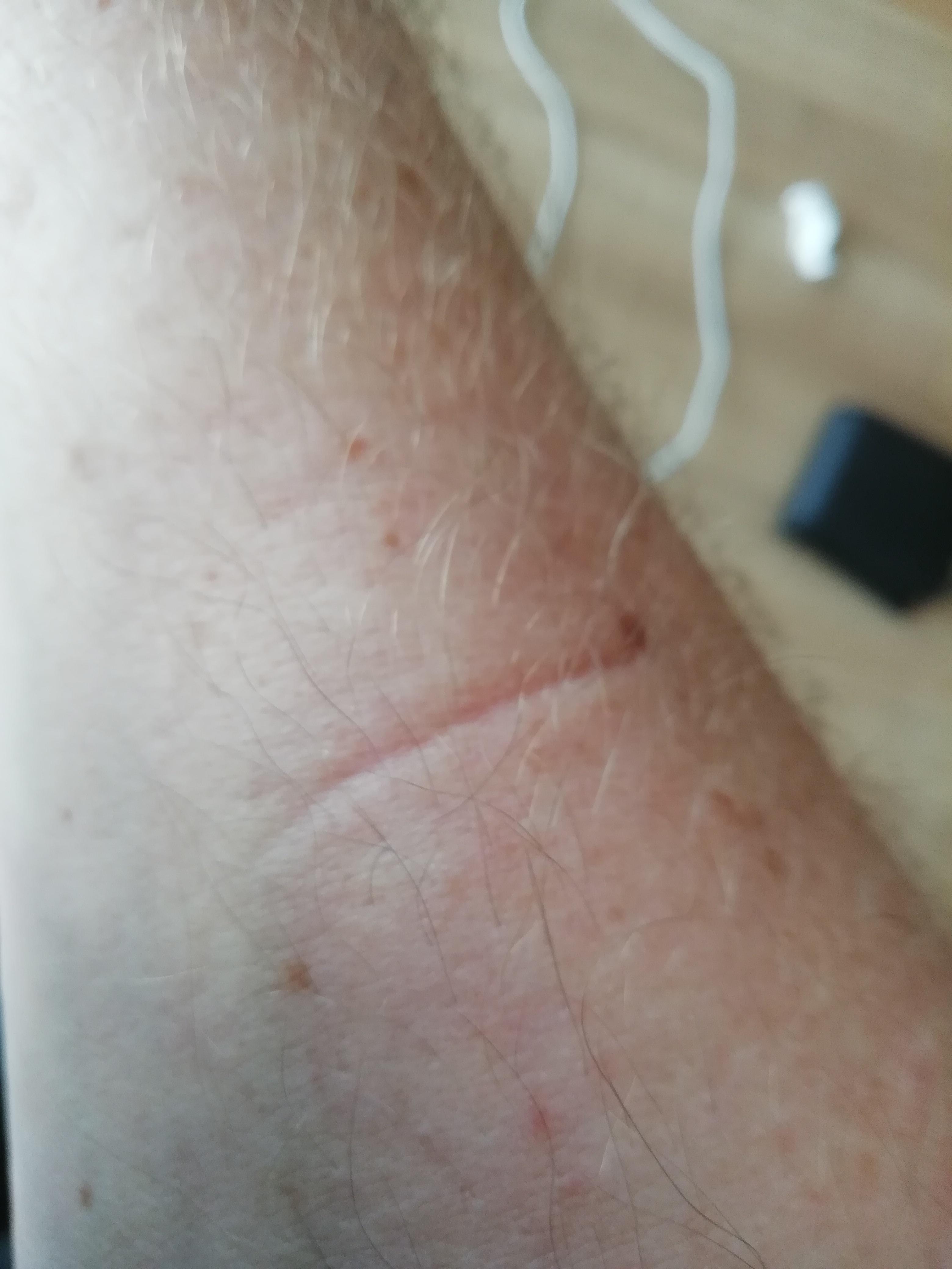ca. 1/2Std nach einer Blutentnahme von mir entdeckt. Ganz sicher kein Kratzer von aussen!