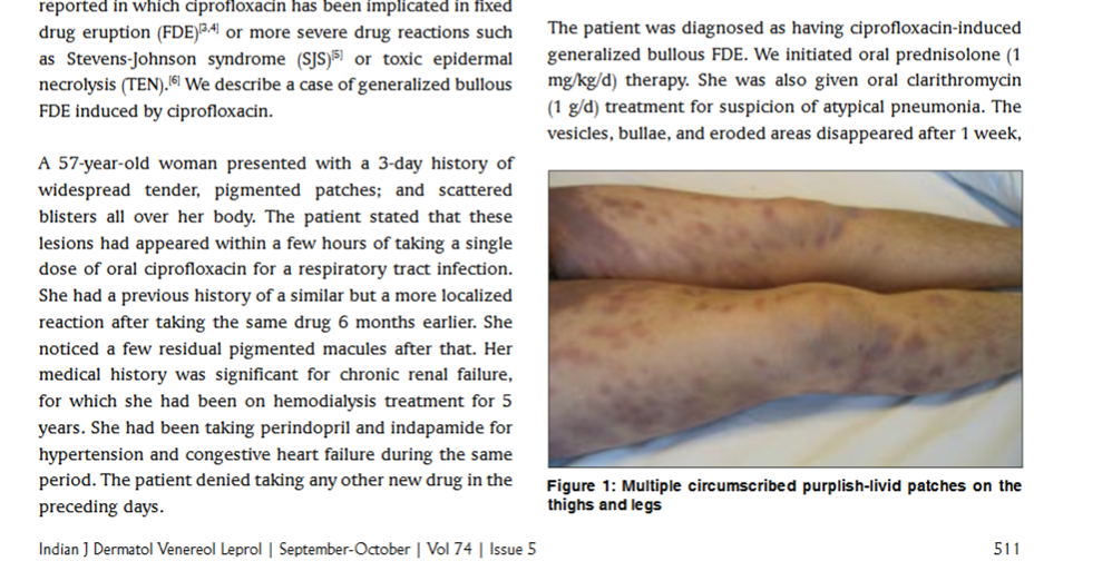 Meine postflox Symptome und Diagnosen, die ärztlich bestätigt wurden (leider auch kein Foto möglich) und die Mitte 30 bei einer ansonsten gesunden Patientin eher ungewöhnlich sind, sind wie folgt (die psychischen Symptome durch cipro mal aussen vor):
