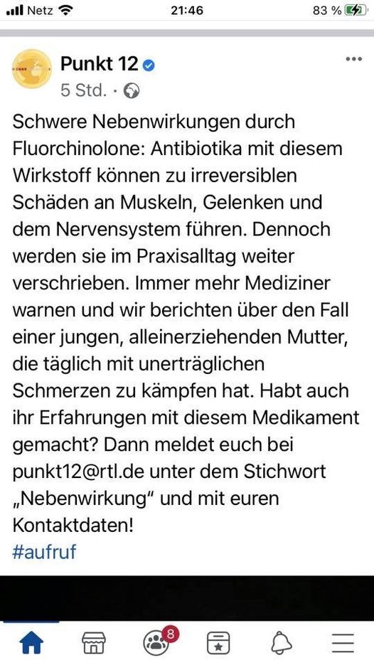 Re: RTL Punkt12 sucht Betroffene von Fluorchinolonen