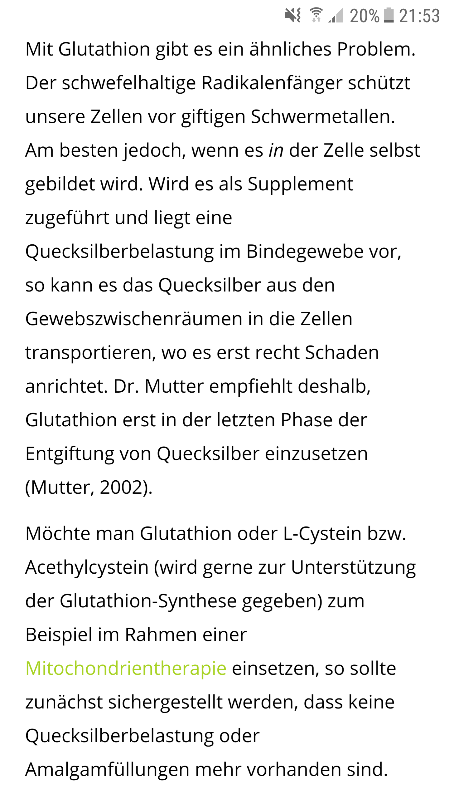 Dann bekomme ich die Glutathion Spritze und danach die Chelatinfusion. Diese übernimmt die Entgiftung im Blut. Sie krallt Schwermetalle fest, lässt sie nicht mehr los und scheidet sie über die Niere aus.