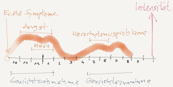 Ich versuche jetzt wieder gegenzusteuern, aber ich habe ehrlich Angst, dass das noch schlimmer wird. Inzwischen kriege ich sogar wieder Hinterkopfschmerzen, die ich seit Monaten nicht mehr hatte. Genauso setzen plötzlich auch wieder die Schweißausbrüche ein.