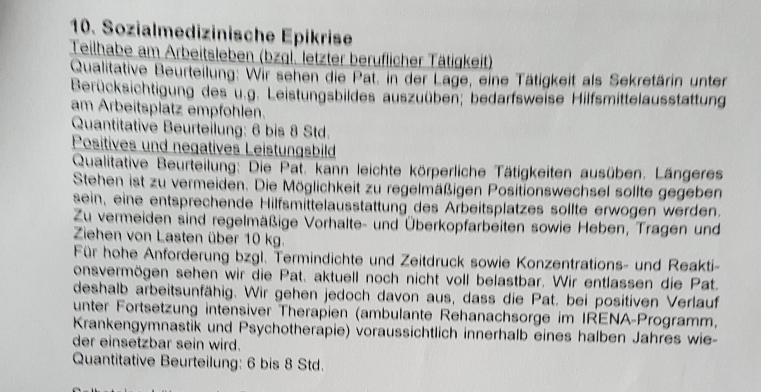 Steht zwar auch im Entlassungsbericht der Reha aber ich befürchte das reicht nicht.
