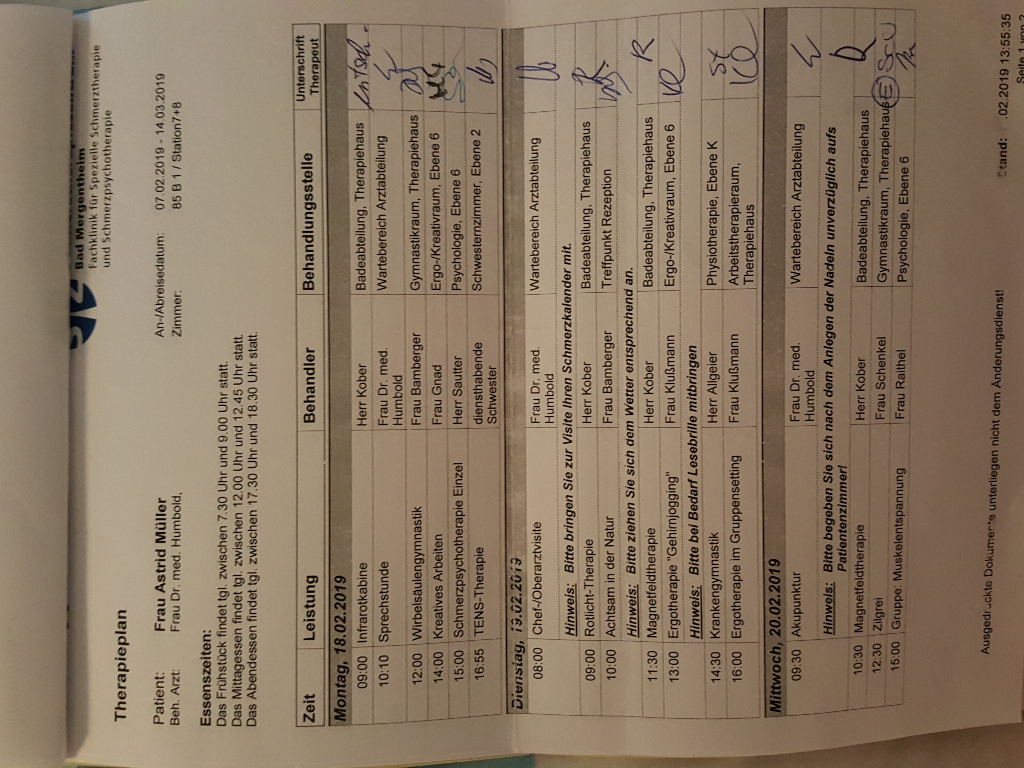 Mit den Ärzten kann man reden und Therapiewünsche äußern und auch den Plan umstellen. Man geht auf Patienten ein.