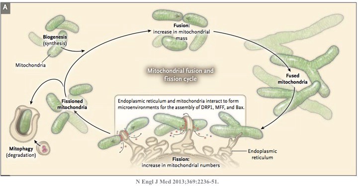 Der Zustand der Mt ist normalerweise nicht statisch sondern hoch dynamisch, Fission, Mitophagie, Fusion u. Proliferation erfolgen ständig.