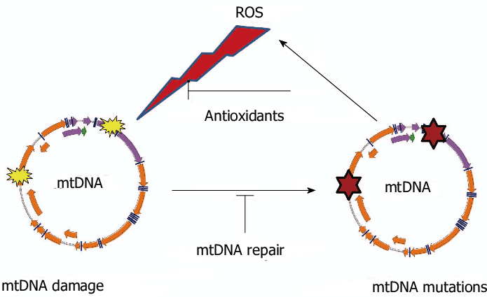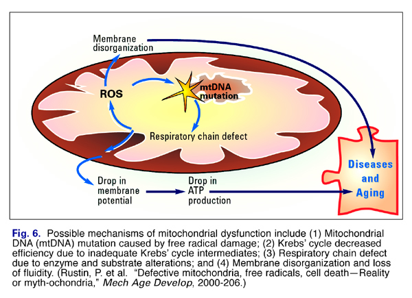 Eben, durch den, mit der oxidierten mtDNA einhergehenden, ATP-Abfall sind alle enzymatischen Prozesse der betroffenen Zellen chronisch gehemmt bis die mtDNA und somit auch das ATP wieder auf gesundem Normalniveau sind.