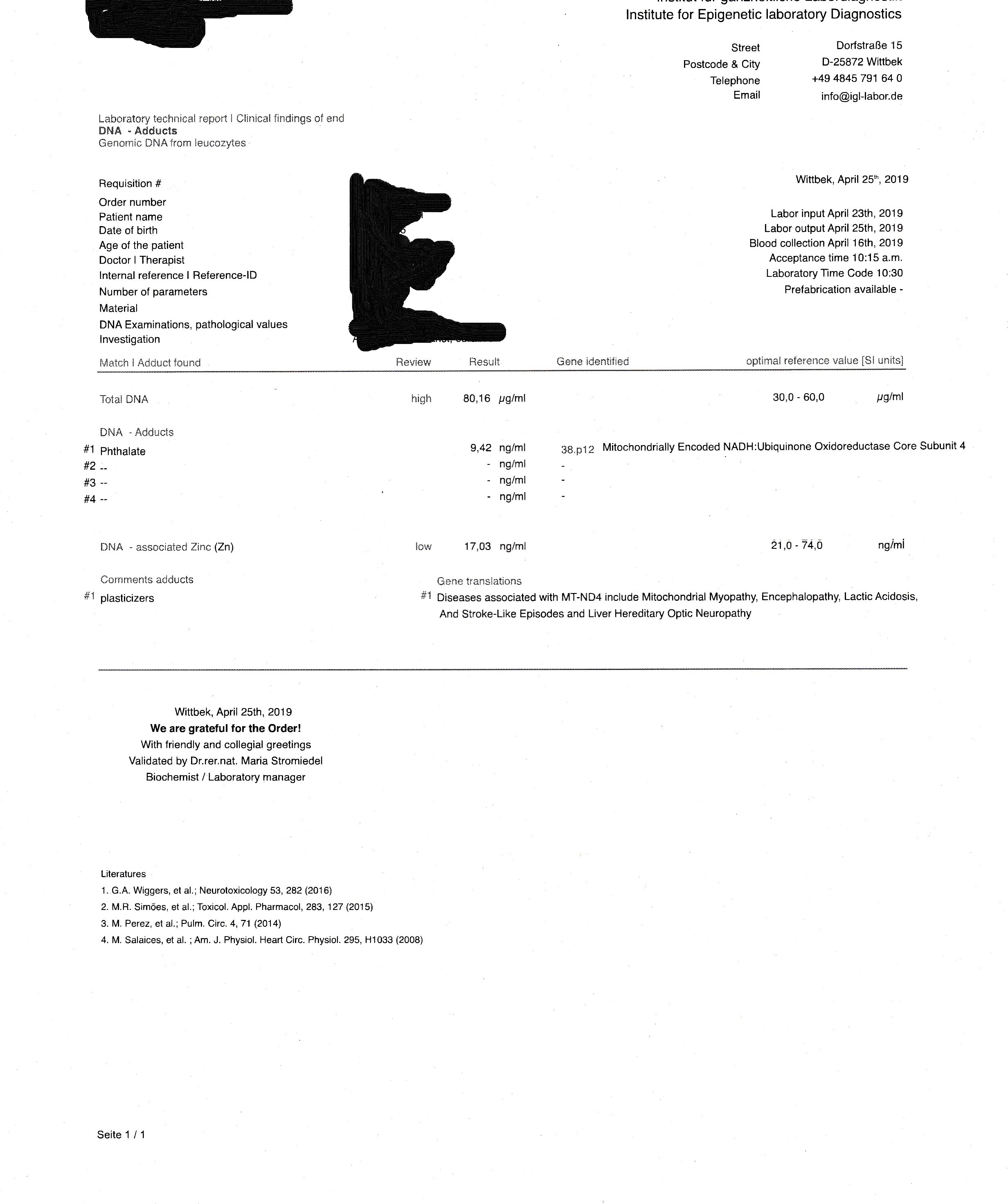 3) Ich habe dem Labor keinerlei Vorgaben gemacht. Daher ist es für mich sehr interessant, das bei der Gene Translation unten rechts von Mitochondrial Myopathy gesprochen wird. Dies passt zu mir wie Arsch auf Eimer! Werden die Phthalate vielleicht nur aus irgendeinem Grund statt FC`s gefunden? Irgendwo habe ich auch mal gelesen, das statt Levo Cipro oder so gefunden wurde. Soll ich von Phthalaten eine MT Myopathy haben?