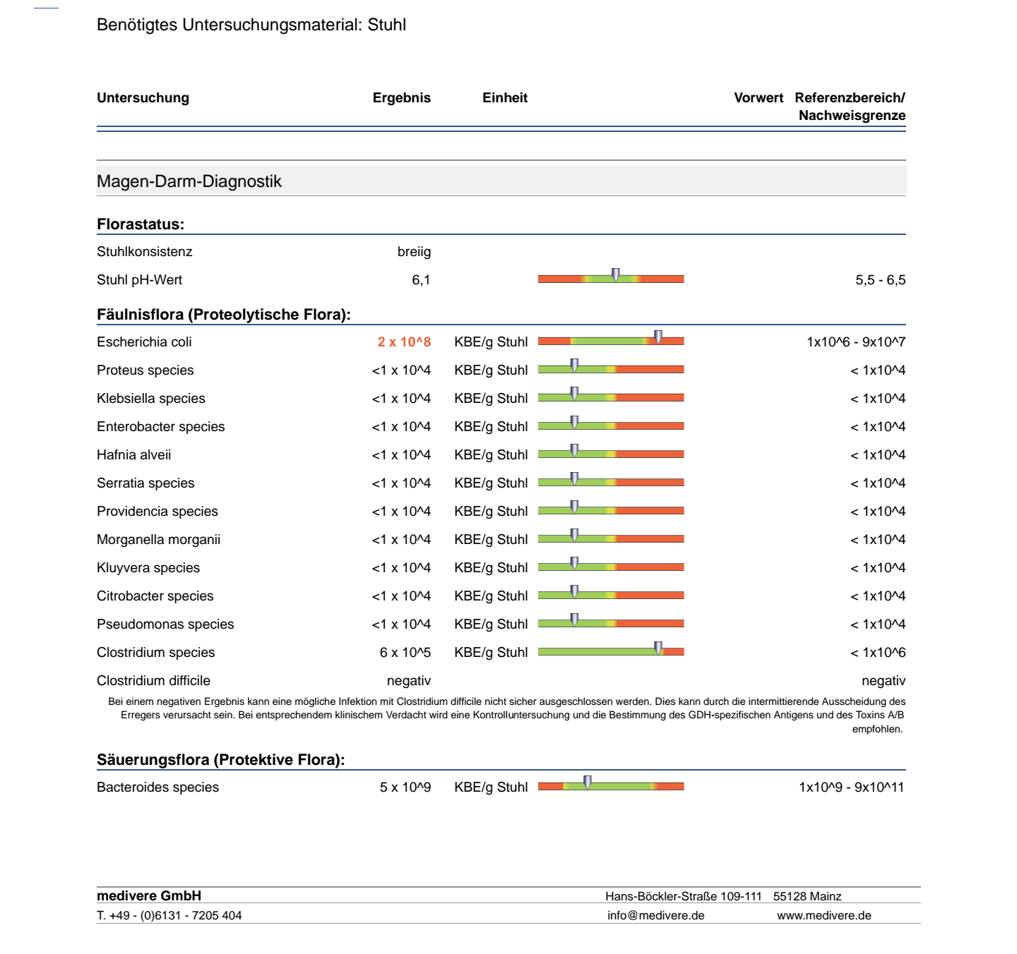 Habe bei Medivere einen Stuhltest veranlasst, jedoch komme ich damit gar nicht klar wie ich jetzt vorgehen soll. Habe zu viel E-Coli und auch ziemlich viele Chlostridien, dafür kaum noch gute Darmbakterien