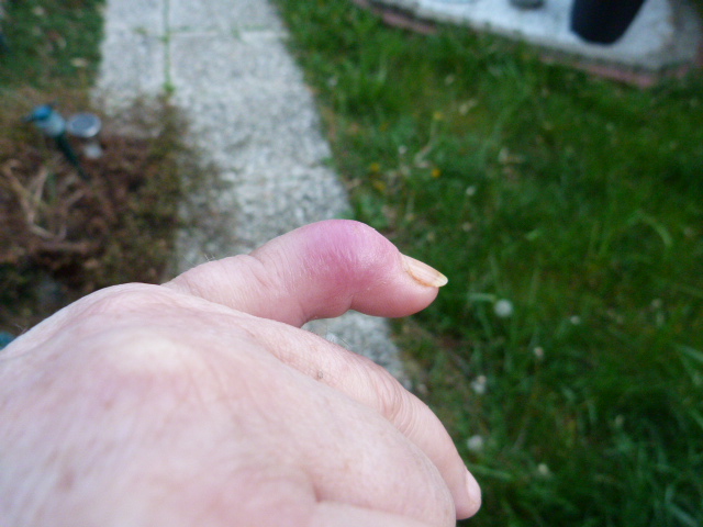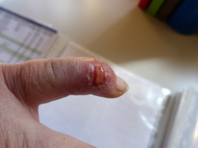 Ich kriege jetzt schon wieder die Panik, aber so wie sich das entwickelt, wird wohl der Finger aufgeschnitten werden (war die Aussage des Arztes, wenn es nicht besser wird).