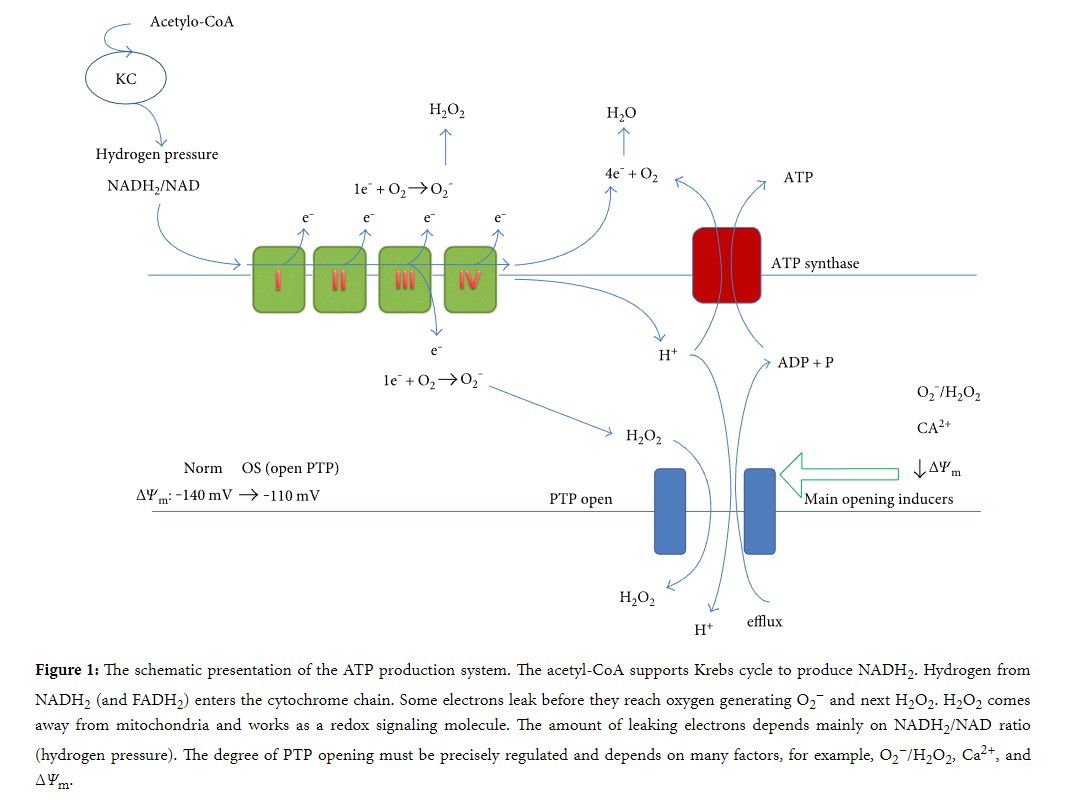 Bei gefloxten Mitos kommt die mitochondriale Atmungskette durcheinander, es wird weniger Energie produziert, die Membranspannung der gefloxten Mitos verringert sich um 40 mV von -150 mV auf -110 mV, letztendlich verringert sich auch die Spannung der gesamten Zellmembran bei zu vielen schwachen Mitos. Nicht viel möchte man meinen, aber laut der sog. Nernst-Gleichung fällt nun die Aufnahme von Kationen exponentiell, sprich bei einem Abfall von -150 mV auf -110 mV verringert sich das Konzentrationsgefälle, sprich die Aufnahme von Kationen wie Mg2+, um den Faktor 10x.