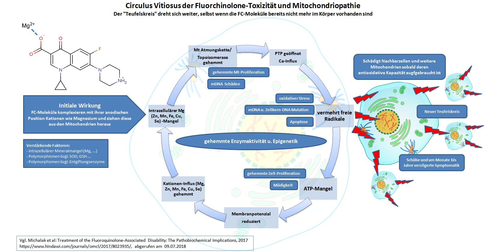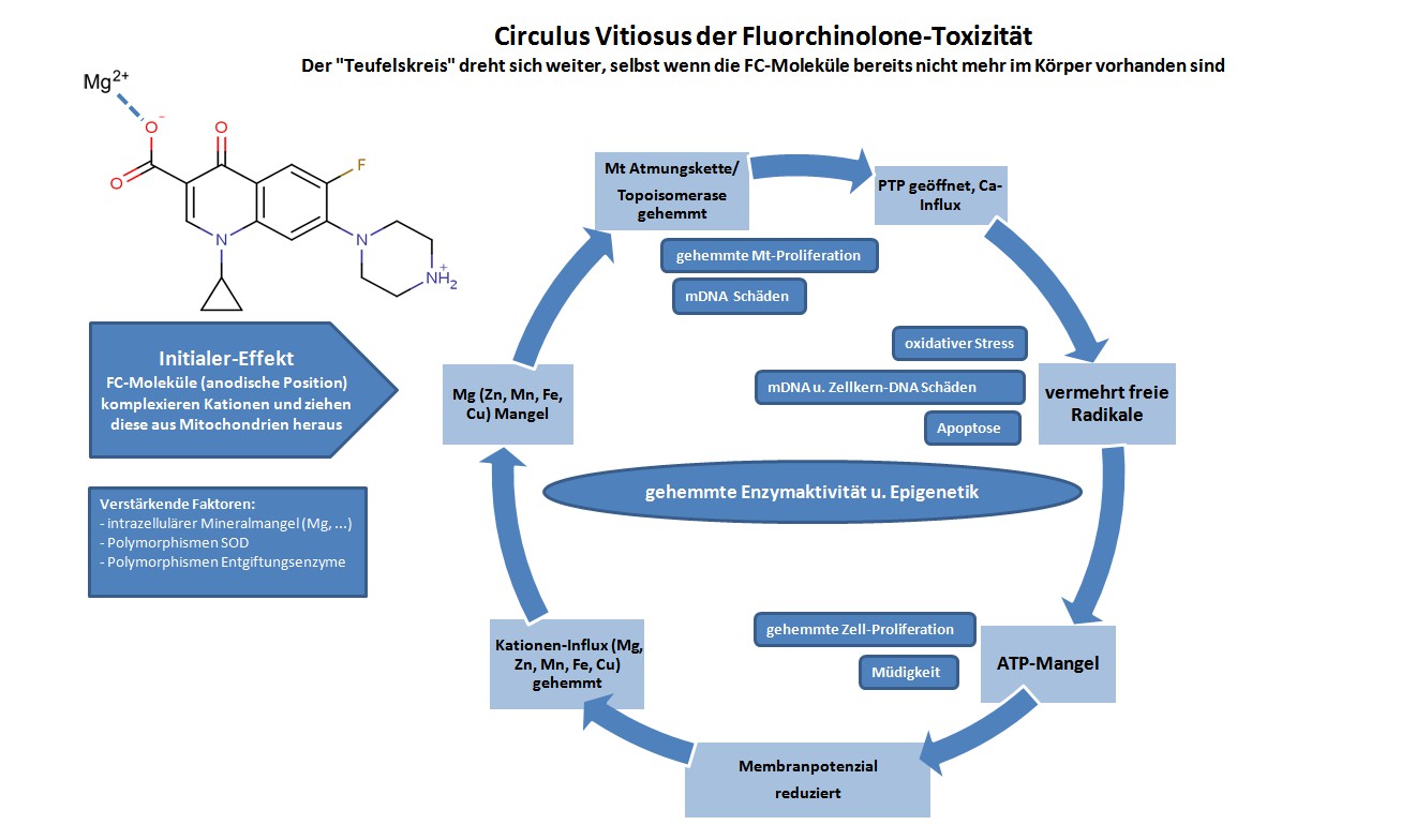 Magnesium wird aber in den gefloxten Zellen benötigt um diese (Atmungskette, Topoisomerase sowie Membran) wieder zu stabilisieren und das eingelagerte Kalzium zu verdrängen.