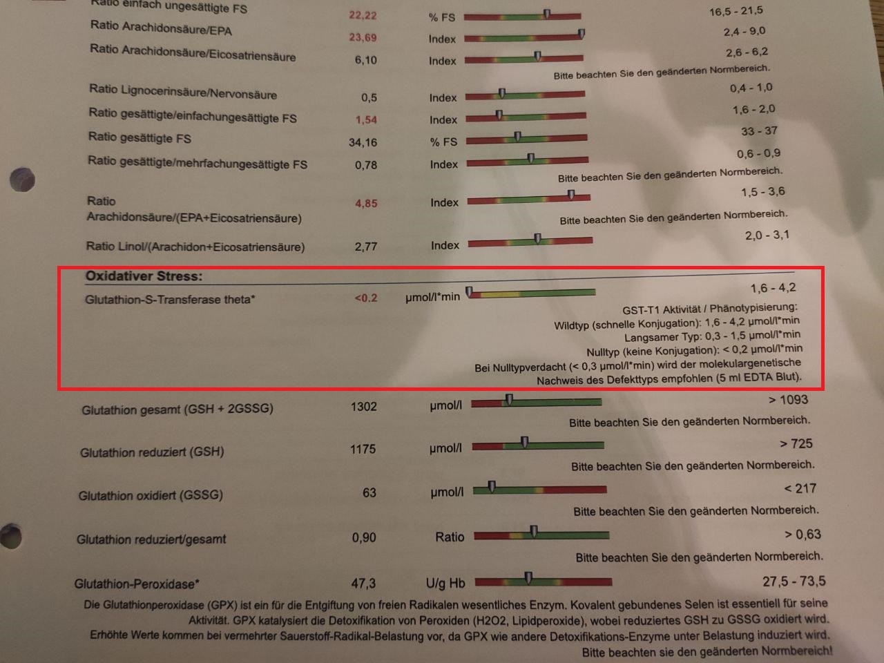 Wurde bei sonst noch jemandem hier Glutathion-S-Transferase bestimmt? Hat sich der Nulltyp bzw ein Mangel ergeben, oder waren die Werte normal?