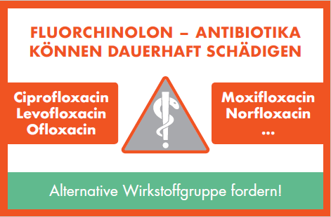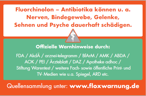 Ein Flyer über die Gefahren von Fluorchinolon-Antibiotika für Patienten, Betroffene,