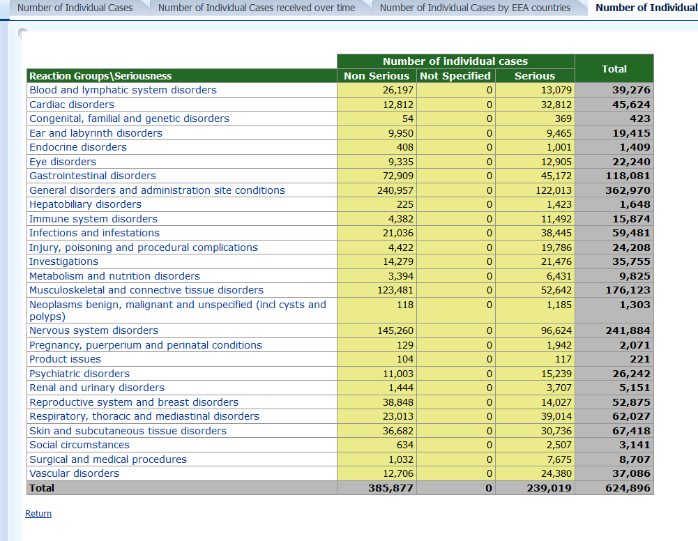 Hier noch Tabellen von der EMA, in denen bei den UAW zwischen "serious" und "non serious" unterschieden wird!